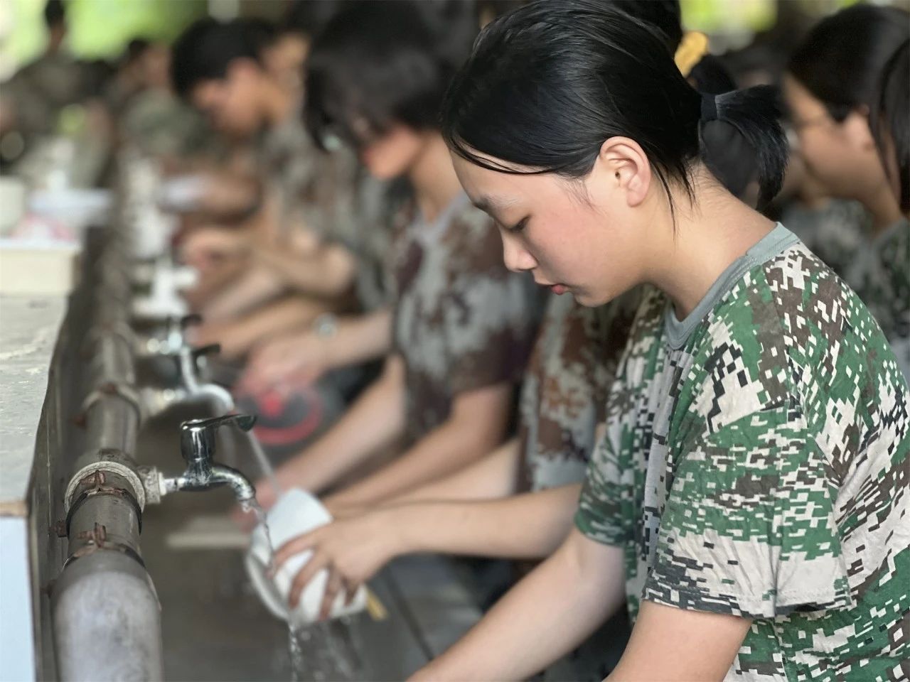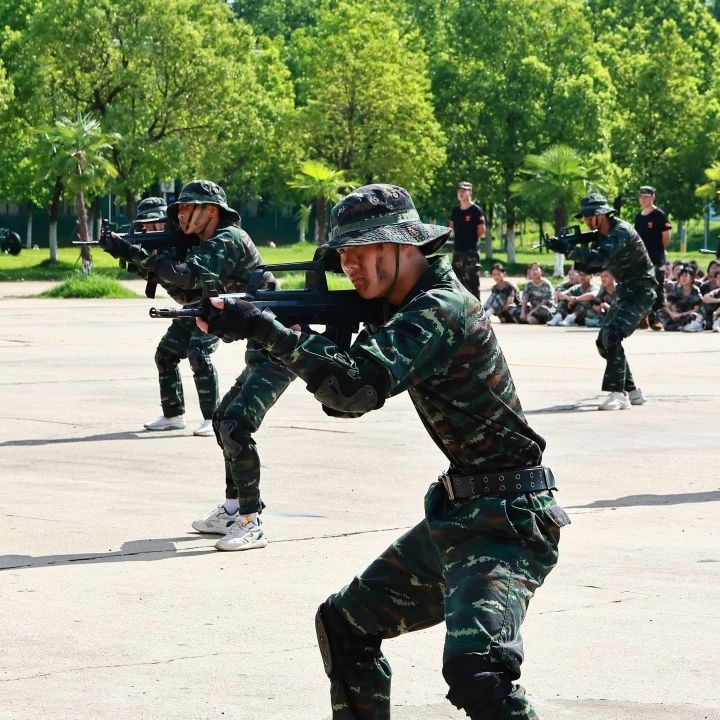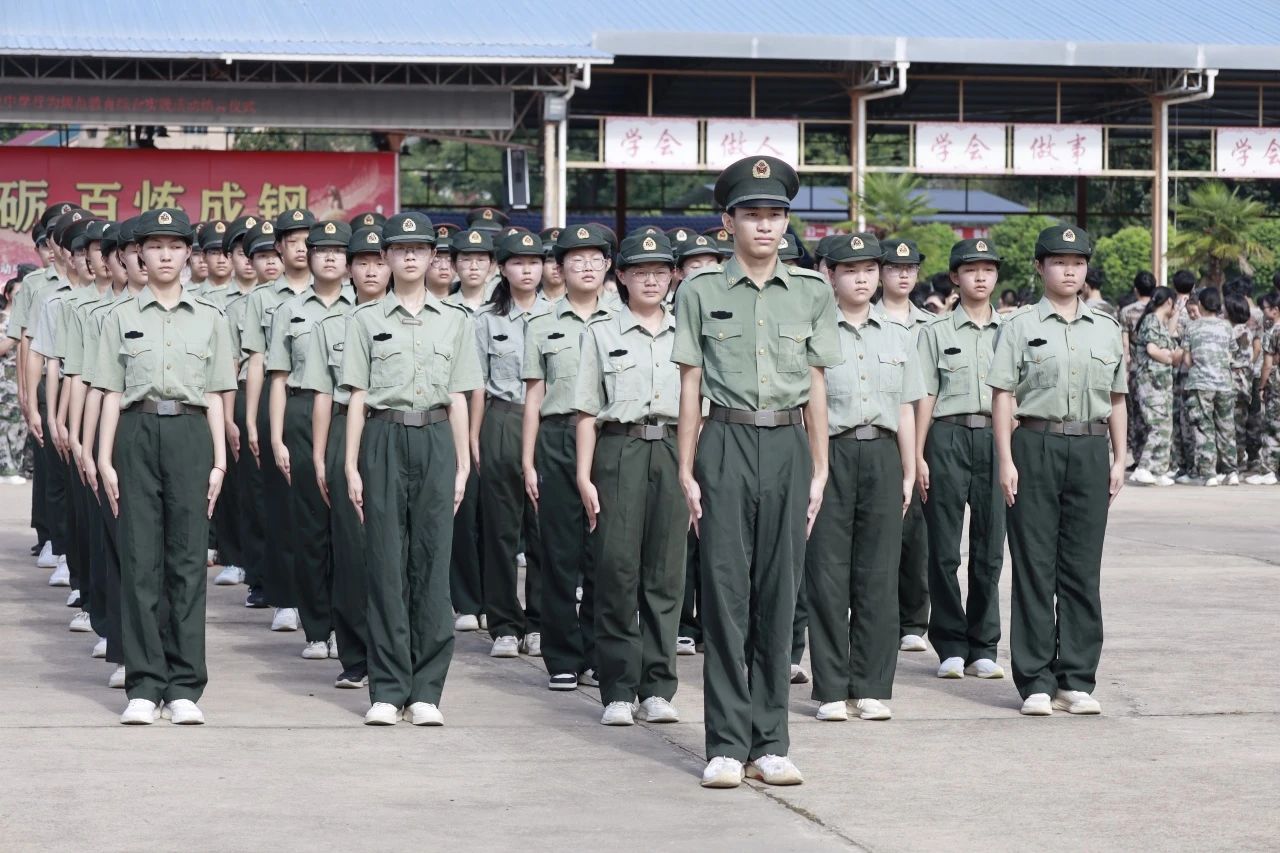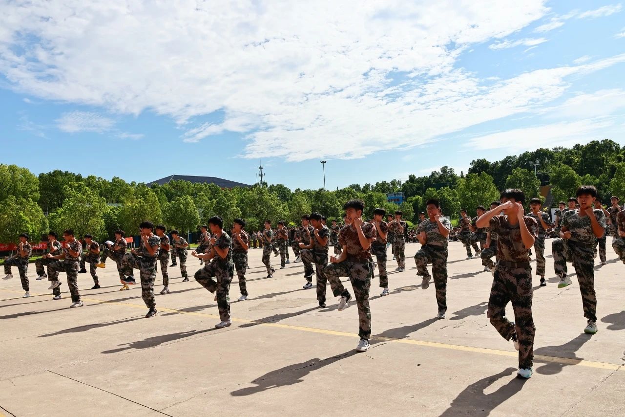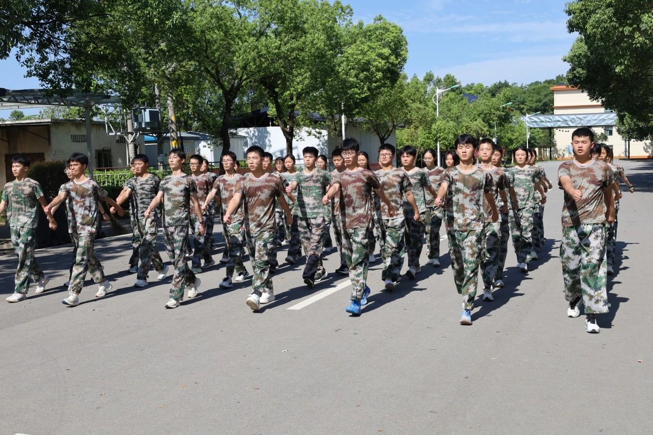 汉川一中新高一的同学们在严格的行规训练中淬炼意志,掌握要领,培养组织纪律观念、良好的行为举止,磨炼顽强作风和坚韧意志。每一次的立正、稍息,每一回的齐步、正步、跑步等训练,在这炎热的夏季都是对自我极限的挑战。汗水反复浸透着迷彩服,他们的眼神依然坚毅,身姿依旧挺拔。因为他们深知,只有经历这般磨砺,才能铸就钢铁般的意志。