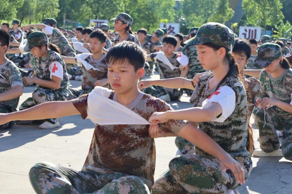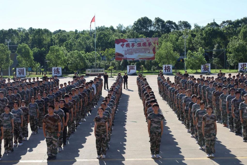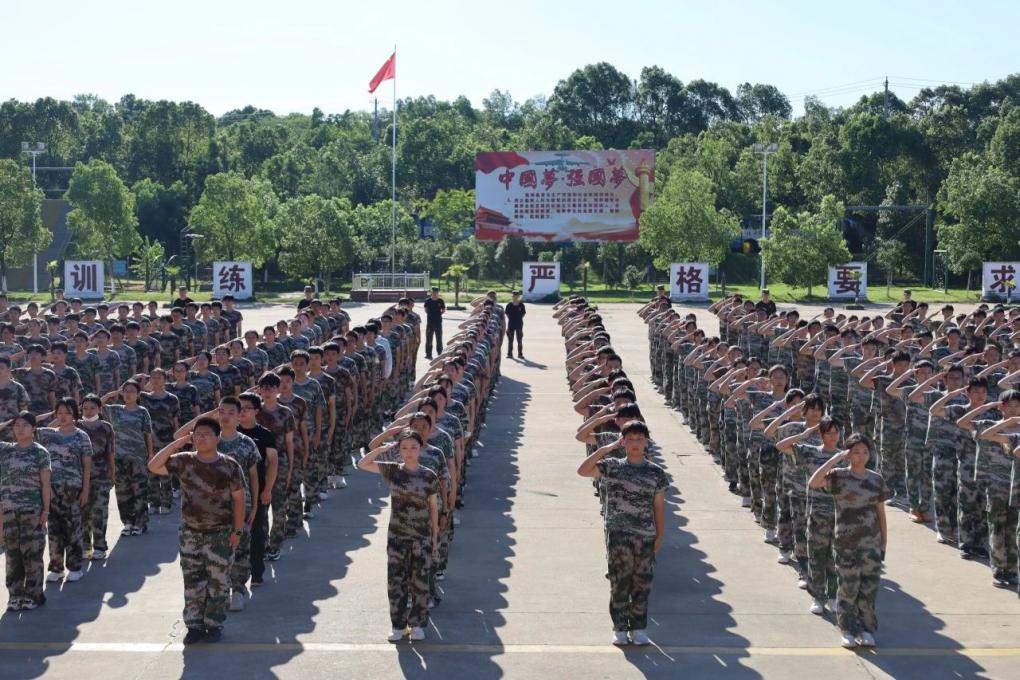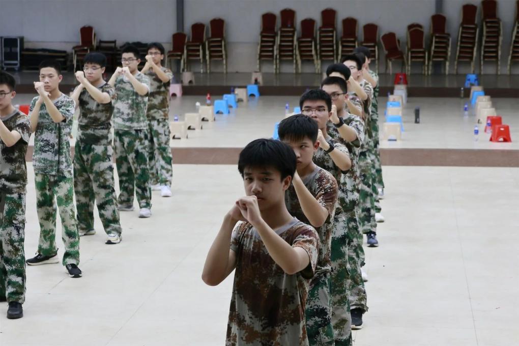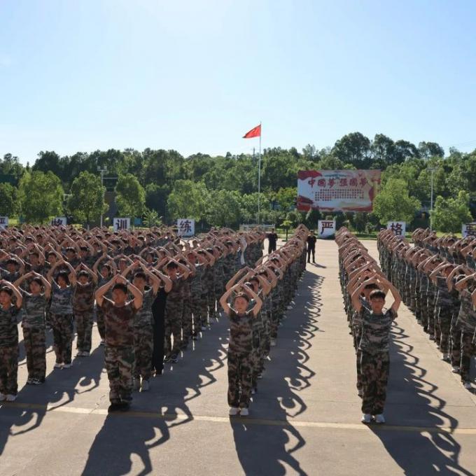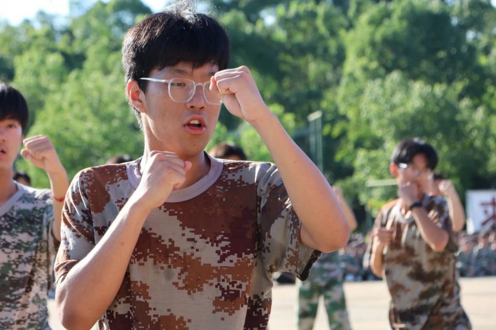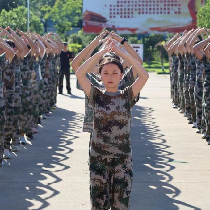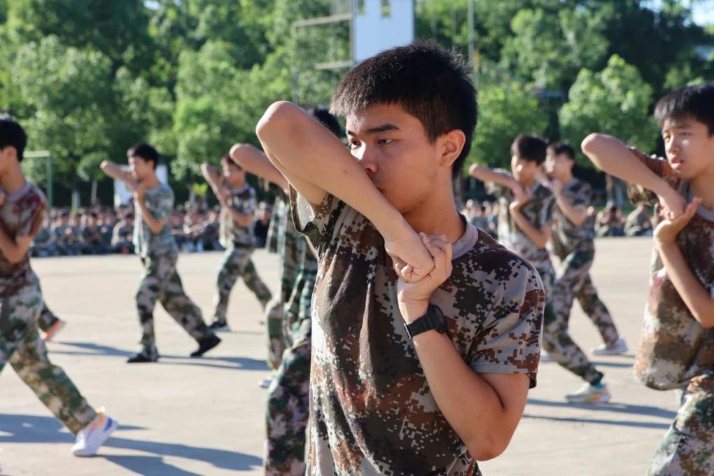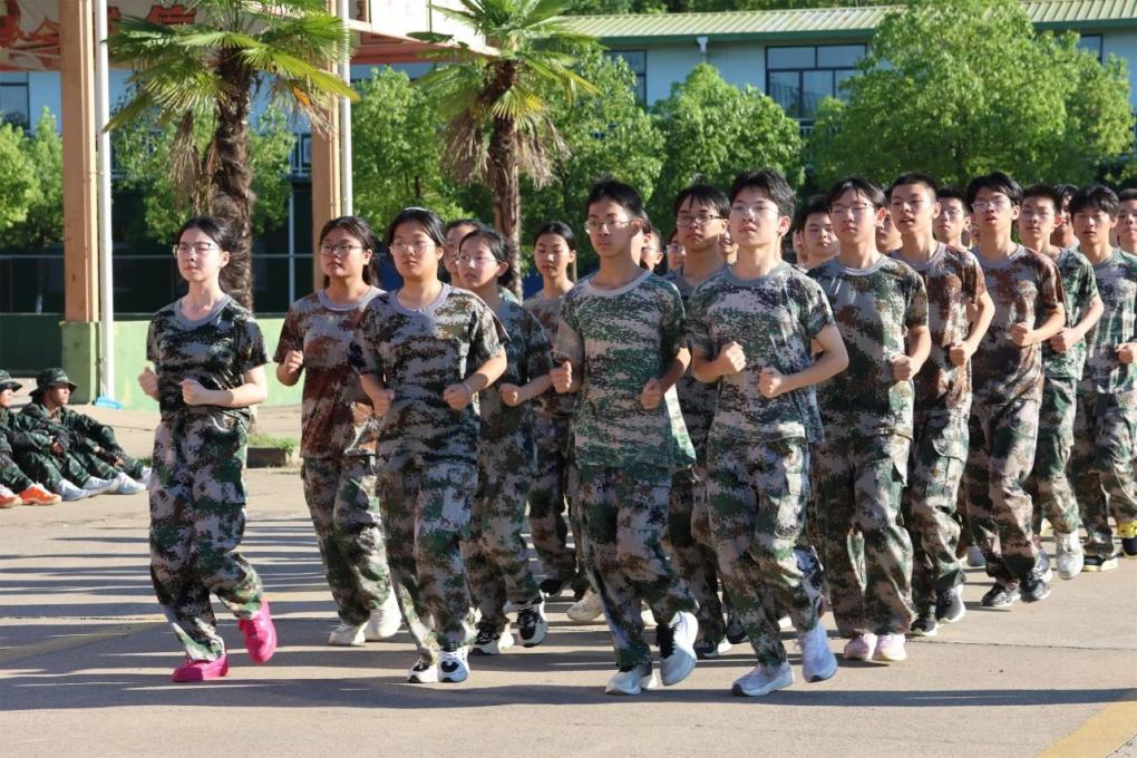 同学们穿着统一的迷彩服,踏着一致的步伐,喊着响亮的口号,展示出青春的活力与朝气。