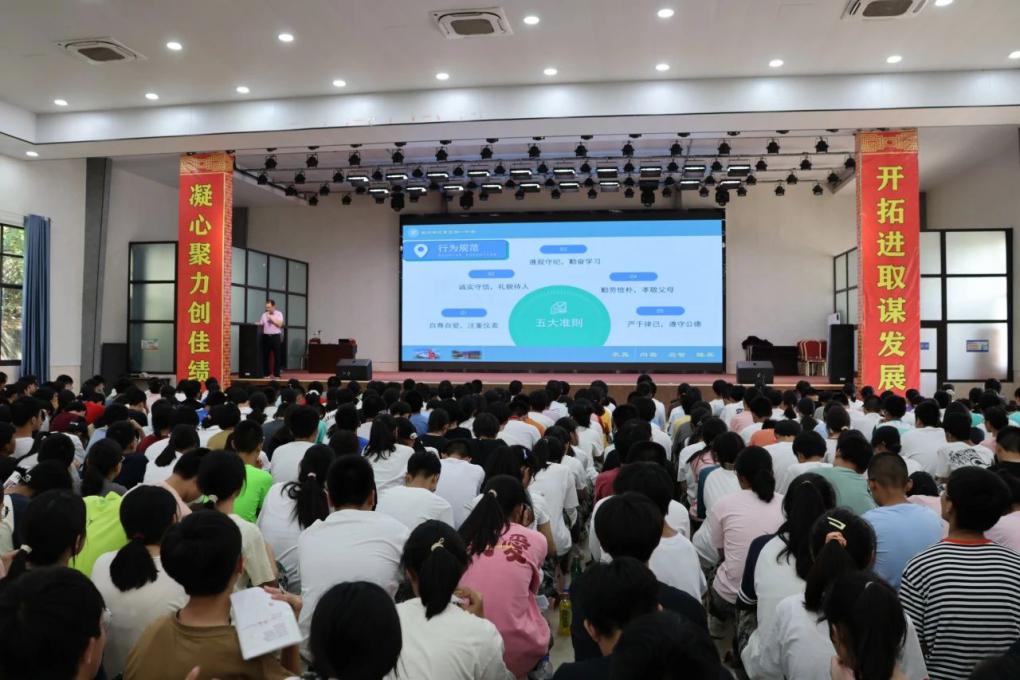 江夏一中全体新生于受训期间,参与了一场由学校与国防教育基地联合举办的系列讲座。这场讲座内容涵盖了消防安全、军事国防教育,以及中学生行为规范等方面的知识。