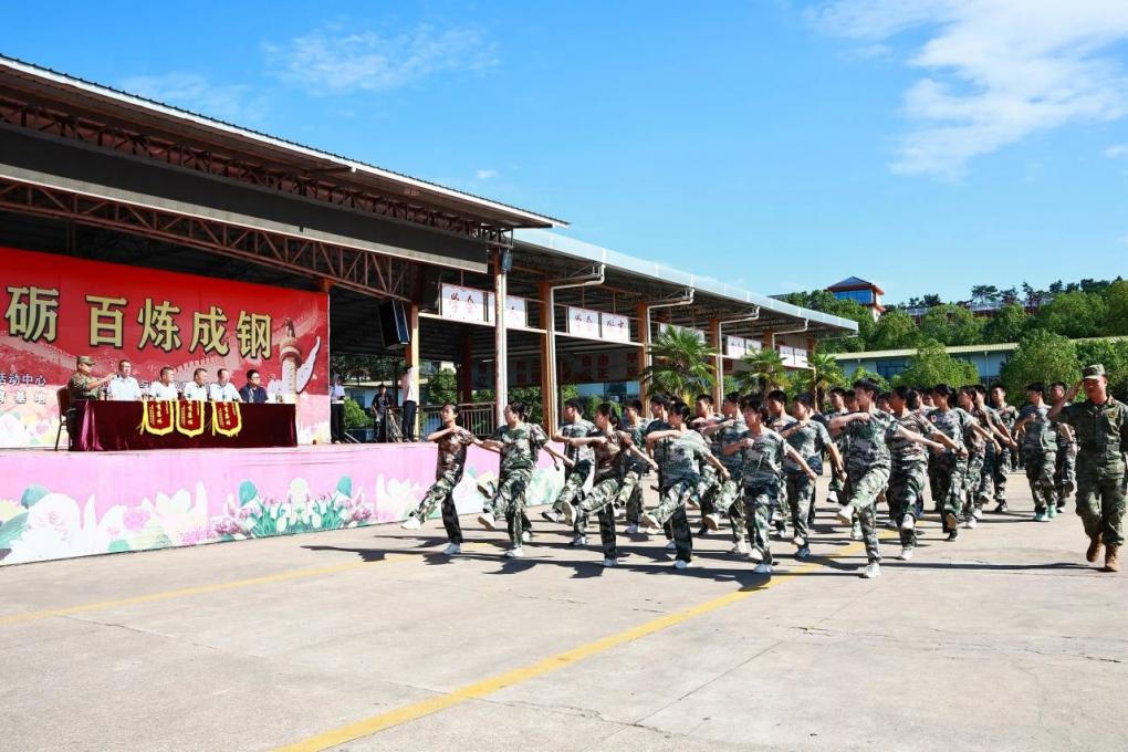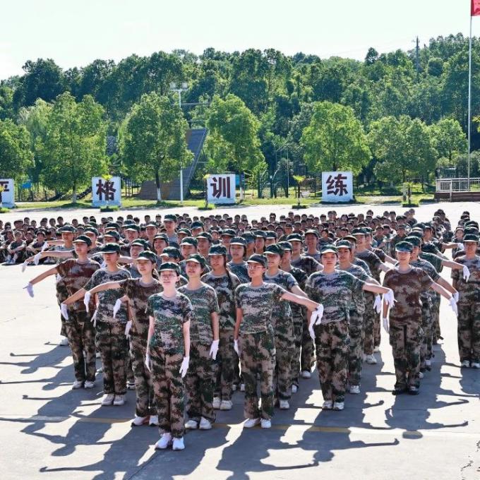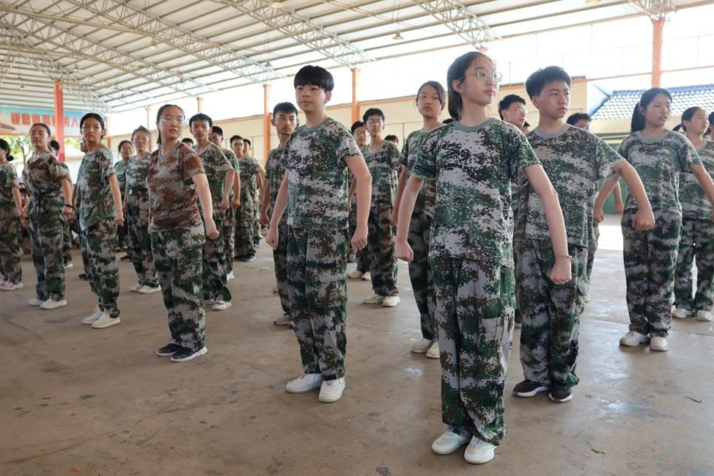 吴家山中学新高一的小战士们在严格的军事训练中淬炼意志,并学习了解《中国人民解放军内务条令》,掌握队列动作基本要领,培养组织纪律观念、良好的行为举止,磨炼顽强作风和坚韧意志。每一次的立正、稍息,每一回的齐步、正步、跑步等训练,在这炎热的夏季都是对自我极限的挑战。汗水反复浸透着迷彩服,他们的眼神依然坚毅,身姿依旧挺拔。因为他们深知,只有经历这般磨砺,才能铸就钢铁般的意志。